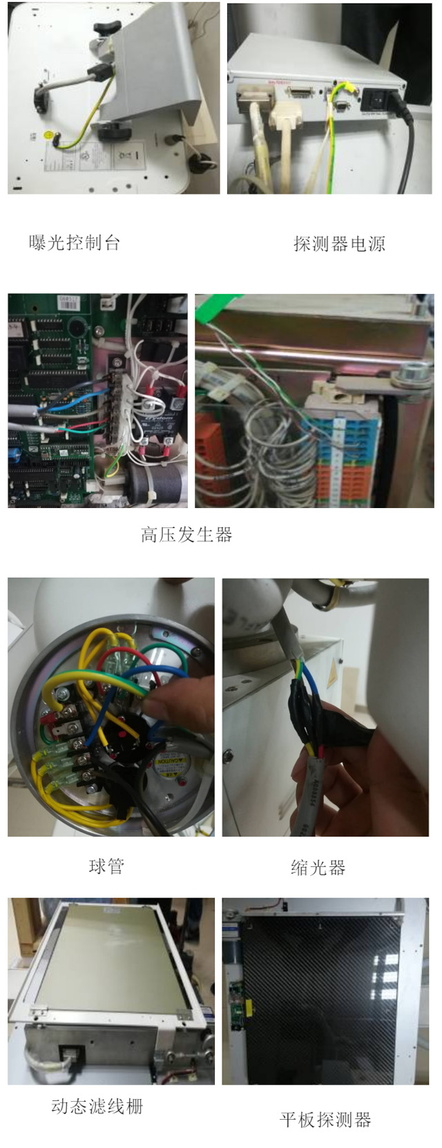 4.拆除懸吊的控制面板和接線,第一步取下縮光器,第二步取下球管,第三步取下控制面板,第四步平板探測器。