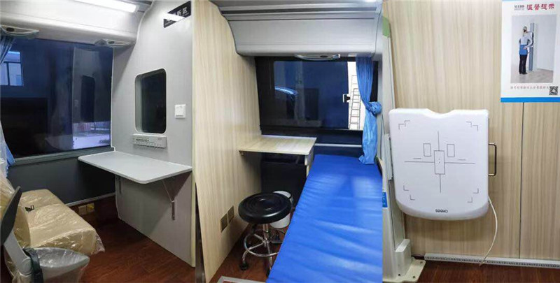 整車根據(jù)流動(dòng)醫(yī)療臨床需求而設(shè)計(jì),從根本上避免了車倆改造對車身整體結(jié)構(gòu)性的破壞;整車低底盤人性化設(shè)計(jì),關(guān)愛行動(dòng)不便人群、整車內(nèi)環(huán)境優(yōu)化系統(tǒng),有效解決了車內(nèi)空氣換氣難題,消除交叉感染。