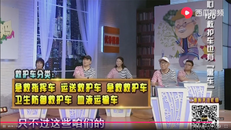 救護車有沒有分類呢?比如說這個病人是心臟病,這個病人是高血壓暈倒了,那個病人腳受傷了。如果這個是小朋友,又是要派什么救護車呢?專家現場給了解答,按國家標準來講,救護車是有分類的。但是并沒有分的那么細致,它可以分為急救指揮車,發(fā)生一些大型事故,然后群死群傷很多人,就需要有個上級領導,到現場進行一個指揮工作。第二個是我們常見的運送病人的運送救護車,這種救護車它一般是運送一些病情比較平穩(wěn)的,它上面有常規(guī)的搶救措施,第三類是叫急救救護車,這種救護車上面裝的設備就非常齊全,主要用于運送一些非常危重的病人,因為對一些危重病人能夠在途中開展一些特別的搶救,比如說上面有呼吸機,進行心肺復蘇等等。第四個衛(wèi)生防御救護車,這種救護車上面會配備一些負壓吸引裝置,它可以把病人呼出的帶有病毒的氣體,通過過濾然后再消毒以后,再排放到空氣當中,然后防止這些病毒傳播,還有比如說一些運血的,血液運輸這方面的對他要搶時間。所以他們也需要救護車,血液在常溫下我們知道保存時間是不長的。所以它需要專門的保溫設備,這個就是血液運輸車。其實救護車的分類還是比較細的。