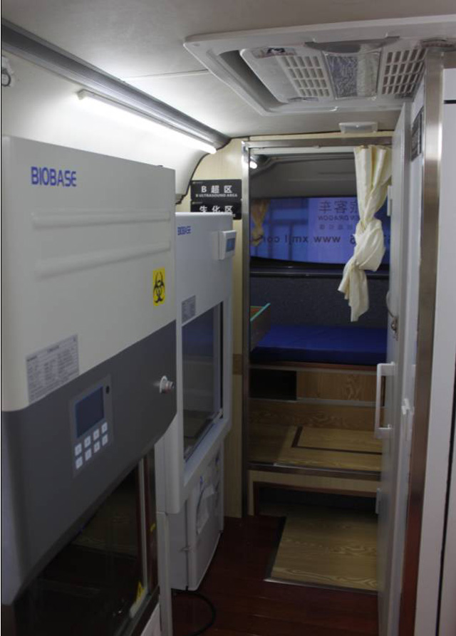 在正規(guī)的體檢醫(yī)療車上,同時(shí)配備有心電圖檢查儀、檢查床、冰柜、空調(diào)和紫外線消毒燈等一系列正常體檢和急救所需的所有設(shè)備。因?yàn)槠淞鲃?dòng)性強(qiáng),在下鄉(xiāng)醫(yī)療活動(dòng)中起到了很關(guān)鍵的作用,對(duì)于某些經(jīng)濟(jì)不發(fā)達(dá)的地區(qū),醫(yī)療條件較差,相關(guān)衛(wèi)生部門可以組織免費(fèi)體檢一類的活動(dòng),大大方便了那些沒(méi)有錢進(jìn)行定期體檢的人。車上有B超檢測(cè)器、胸透等儀器,孕婦也能做些保險(xiǎn)性的檢查。體檢醫(yī)療車分為幾種,分別為全科體檢車、婦女健康管理車和DR體檢車。比較而言,前者是一把抓,中間一個(gè)是分特定對(duì)象的,而最后的是搭配有DR設(shè)備的體檢車。