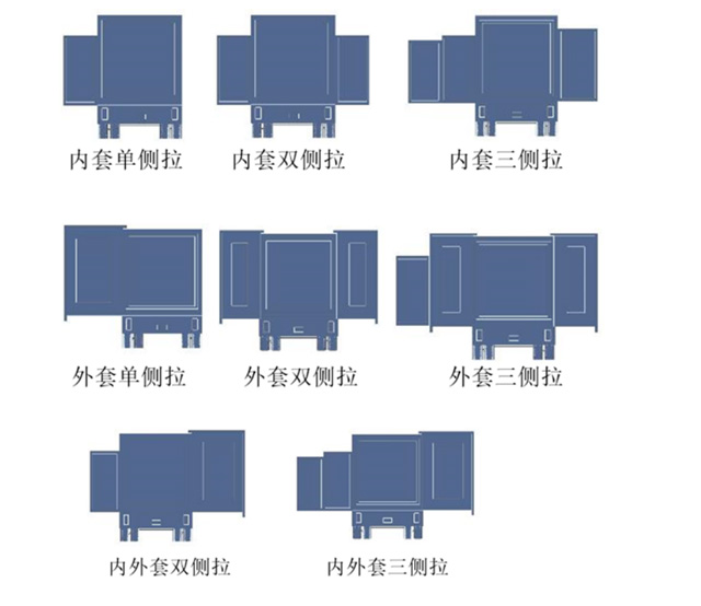 目前常用的主要有內(nèi)套拉箱、外套拉箱,和內(nèi)外套拉箱形式。