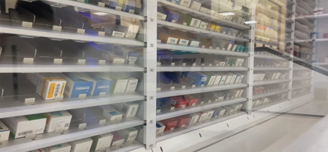 快速出藥系統(tǒng),智能存取系統(tǒng),混合智能配發(fā)系統(tǒng)。出藥系統(tǒng)負(fù)責(zé)盒裝藥品的發(fā)送,智能存取系統(tǒng)負(fù)責(zé)針劑量小的藥品的儲(chǔ)存和發(fā)放。智能配發(fā)系統(tǒng)負(fù)責(zé)為后臺(tái)藥師降配好的藥品藥框提供擺放位置的指示,為前臺(tái)藥師提供患者取藥時(shí)藥框位置的指示。針劑發(fā)藥機(jī)的發(fā)框設(shè)備接收到處方信息后,電腦打印出藥品的明細(xì)并且彈出藥框。藥品通過傳輸帶傳送,然后到達(dá)出藥口。針劑區(qū)對(duì)應(yīng)藥品的藥盒會(huì)亮燈提示藥劑師藥品的位置。點(diǎn)擊出藥確認(rèn)后會(huì)接收下一張?zhí)幏剿幤沸畔?。調(diào)劑藥師核對(duì)無誤后將藥框放到軌道上面。藥框通過軌道傳送到對(duì)應(yīng)的發(fā)藥窗口。發(fā)藥藥師根據(jù)出發(fā)信息點(diǎn)擊發(fā)藥,對(duì)應(yīng)處方的藥框亮燈進(jìn)行提示。發(fā)藥藥師根據(jù)處方再次核對(duì)藥品無誤后,粘貼用藥標(biāo)簽,進(jìn)行用藥交代,結(jié)束發(fā)藥。
