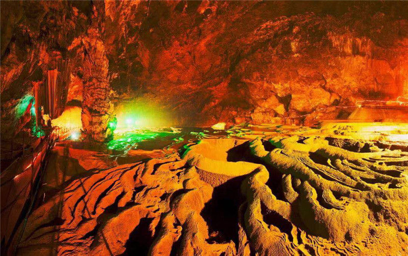 進入黃仙洞后,只見洞內(nèi)奇石異景、百態(tài)紛呈,特別是2萬平米的邊石池、形似梯田,是黃仙洞最具特色的地方,大家被眼前的景觀深深吸引,情不自禁折服于大自然的鬼斧神工。