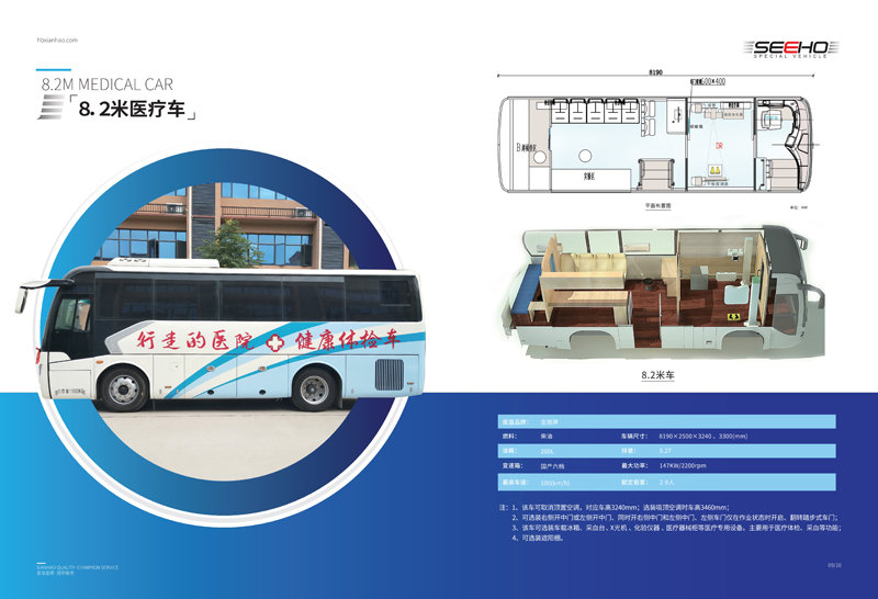 我司生產(chǎn)的職業(yè)病體檢車均選用一線品牌車(宇通、金龍、金旅); 車長(zhǎng)有6米、7米、8.2米、9米、10.5米、11米、12米可選。